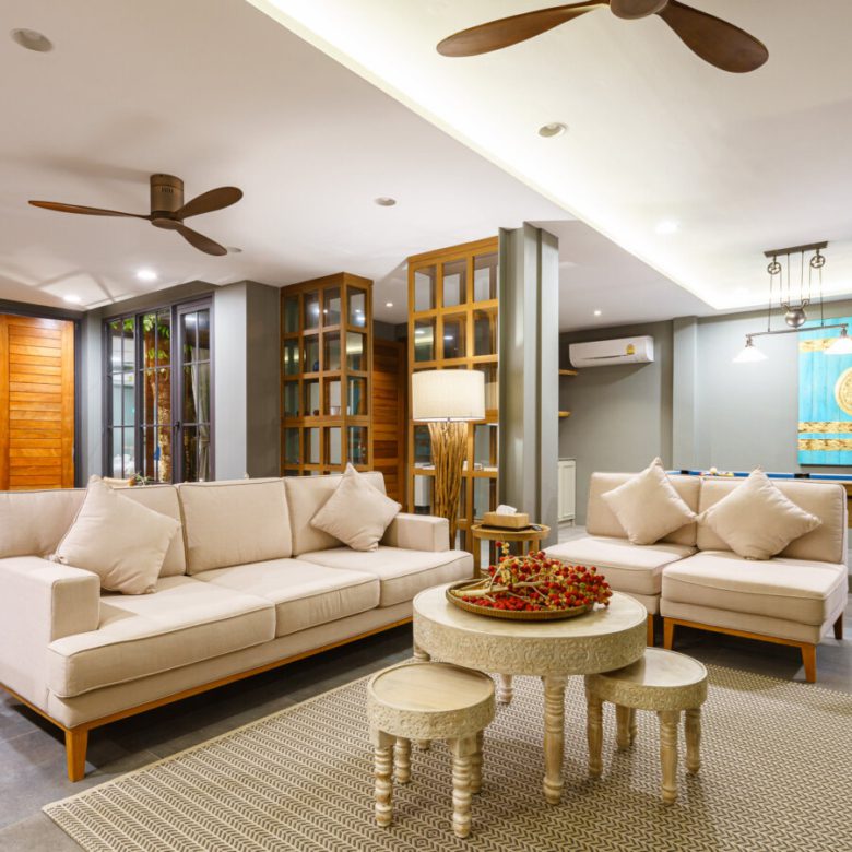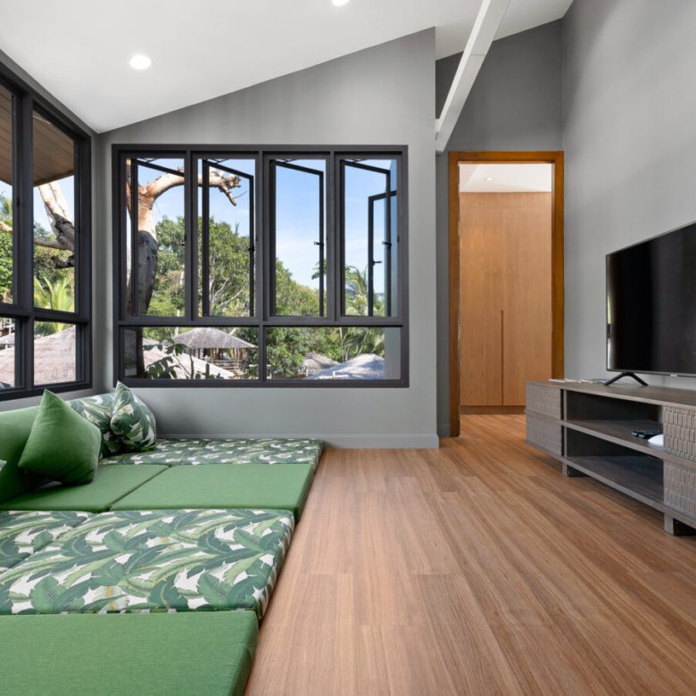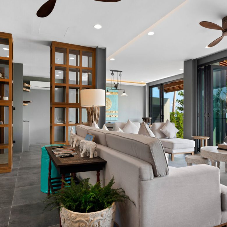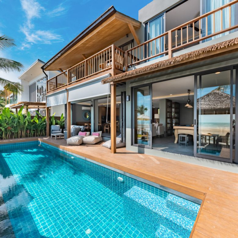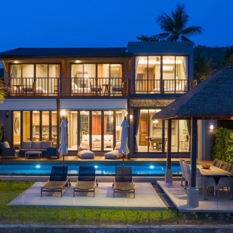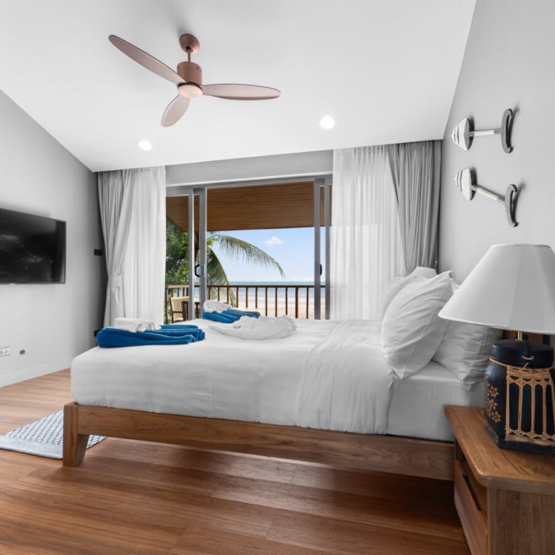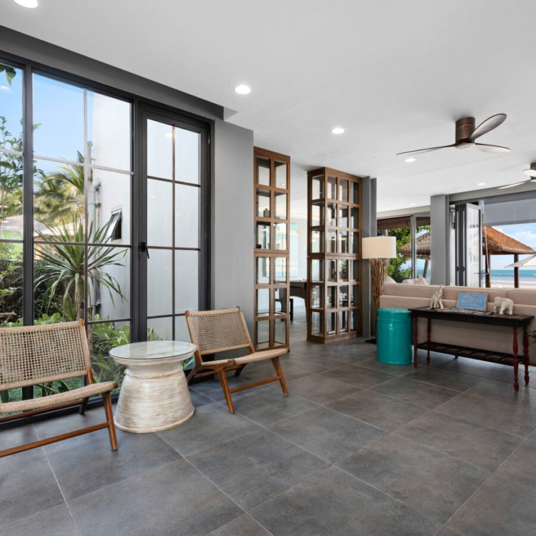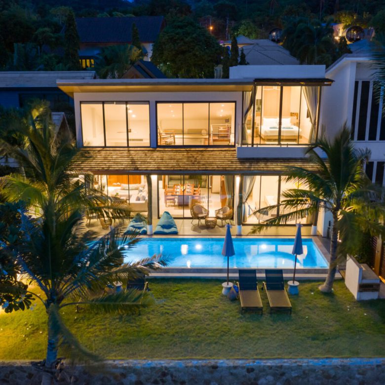This stylish, tropical, luxurious, breezy and absolute beach front combines form and function and offers magnificent views of Samui’s small islands and the sea beyond. With 520 mÂē of indoor/outdoor living space with 5 en-suite bedrooms, large living area, beachfront infinity pool, garden, air-conditioned, gym, professional pool table, BBQ and sala, this villa is perfect for up to 10 adults.