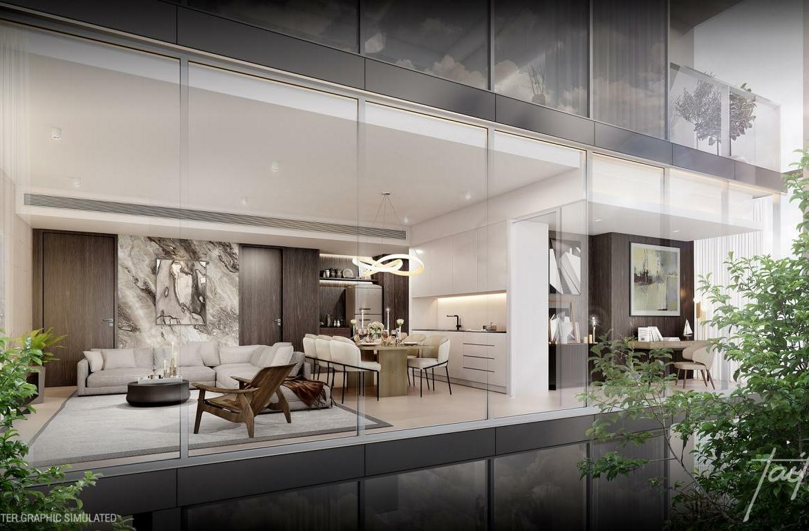 1.Tait 12 is an iconic luxury condominium developed by Raimon Land and Tokoyo Tatemono’s joint venture. One of the most well-known developers in Thailand. The project is located in Sathorn soi 12 and only 180 meters away from St.louist BTS. This 40 high-stories is designed with clean large glass panels which give you a stunning paramedic view, hence why this is one of the most unique projects in Bangkok. Over 2,000 sqm of state of the sky facilities, amphitheater lounge with sky gym, chlorine-free infinity pool, private dining room, pet-friendly zone, and almost 100% parking space. 2 bedrooms & 2 bathrooms 104 sqm, spacious balcony, high floor, fully fitted design.