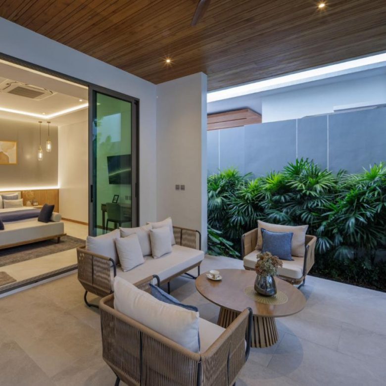 With the principles of life, luxury, and longevity at the forefront, each of The Alena pool villas have been designed with the utmost care for those discerning buyers who value sustainability and privacy above all. Set against the lush tropical jungles of Western Phuket, these modern pool villas are built to exude classic charm. Teakwood, the namesake. timber chosen for the villa doors, symbolizes our passion for using durable and elegant materials. This is not only so that the villas may blend in with their natural surroundings, but also to ensure that their owners may enjoy these homes away from home for generations to come. With only thirteen units, the Teak promises intimate connections with like-minded neighbors and endless serene days of relaxation.