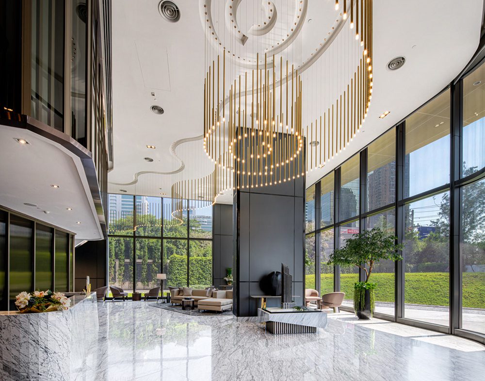 The ESSE at Singha Complex luxury condominium is located at the corner of the bustling Asoke – Phetchaburi intersection. It’s connected directly with the MRT station, while the ARL and boat taxi stops are both within walking distance. The project has 39 floors, 319 units. The facilities include a sky social lounge, private theater, the residence lounge for private parties, gym, swimming pool, co-working area, and a meeting room. A sky social lounge, private theater, the residence lounge for private parties, gym, swimming pool, co-working area, and a meeting room