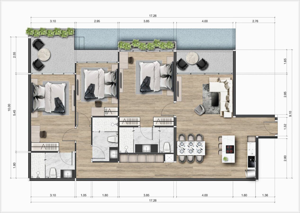 The gourmet kitchens are equipped with state-of-the-art appliances, while bedrooms offer plush furnishings and soothing color palettes for a tranquil retreat. Our bathrooms are a sanctuary of modern elegance, featuring exquisite tiles, fixtures, and spa-like amenities
