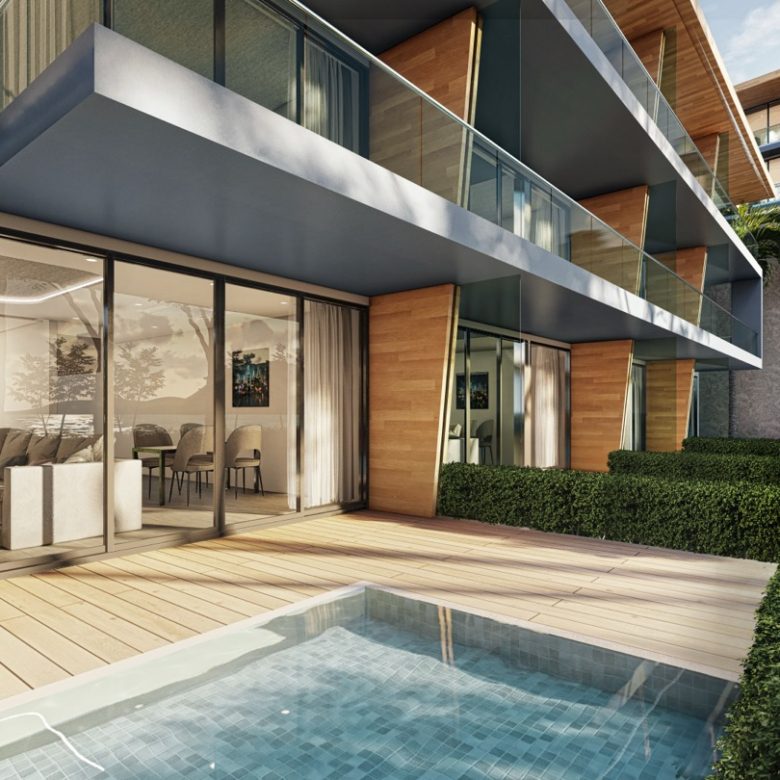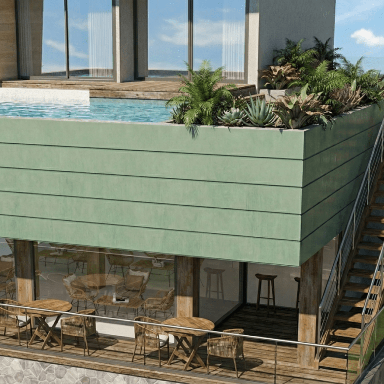 The Galaxy Oceanview Resort embodies a sense of luxury and style with the exterior features showcased in the overall design. Enjoy the rooftop panoramic oceanview terrace with reflection pools, BBQ facilities, and lounge areas for a perfect sunny day or relaxing evening watching the vibrant sunset over the Bay. Between the two boutique buildings of the project a bridge takes you from the rooftop terrace to the infinity edge swimming pool of Building A. The fantastic waterfall provides a calming ambiance and is a primary aesthetic feature of the development.