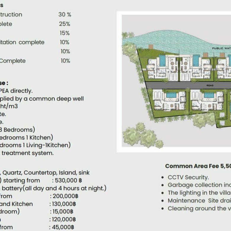 8 individual Leashold Villas in 3 different Types. What really sets the projects apart is commitment to excellence in everything. From the quality of construction to the level of customer service, to ensuring that every aspect of your home buying experience exceed expectation. The New Villas are conveniently located just 800 m from Seven-Eleven,