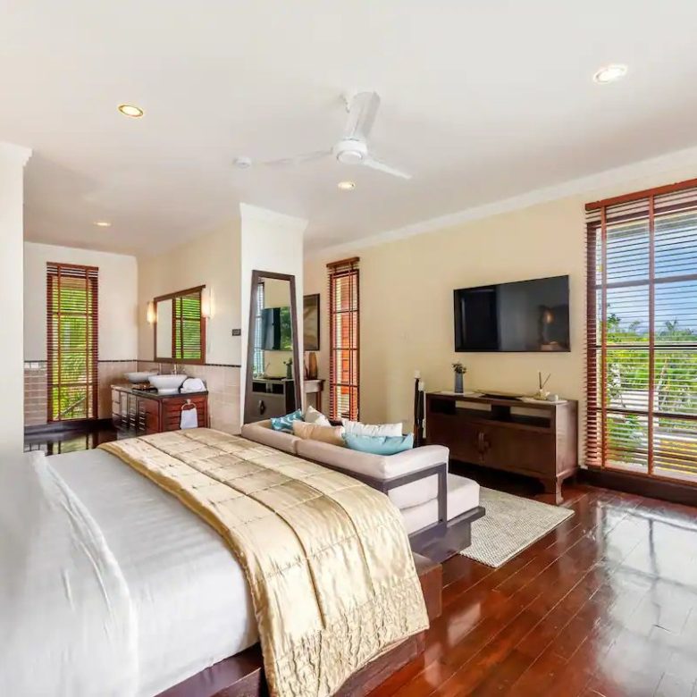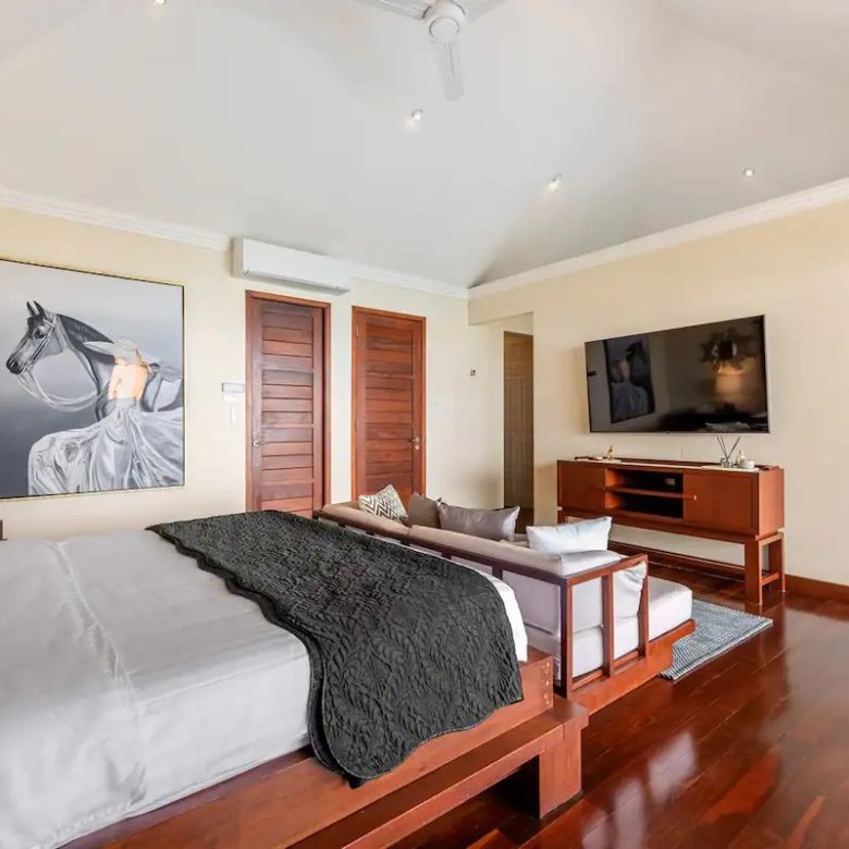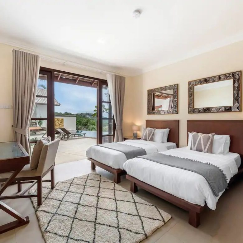 Experience luxury living at its finest in this exquisite 4-bedroom villa located in Choengmon, offering breathtaking sea views from every bedroom. Immerse yourself in the tranquility of the surroundings as you relax by the generously sized saltwater private pool. Convenience is key with a private car park right at the villa’s doorstep.