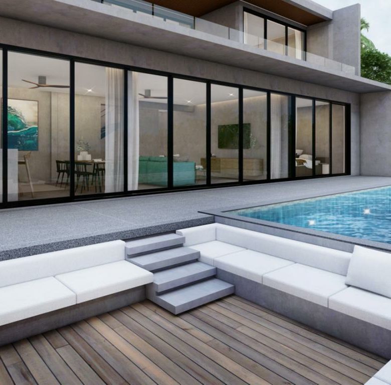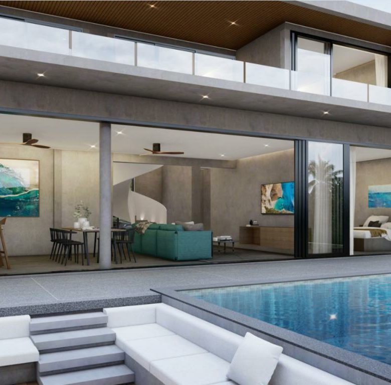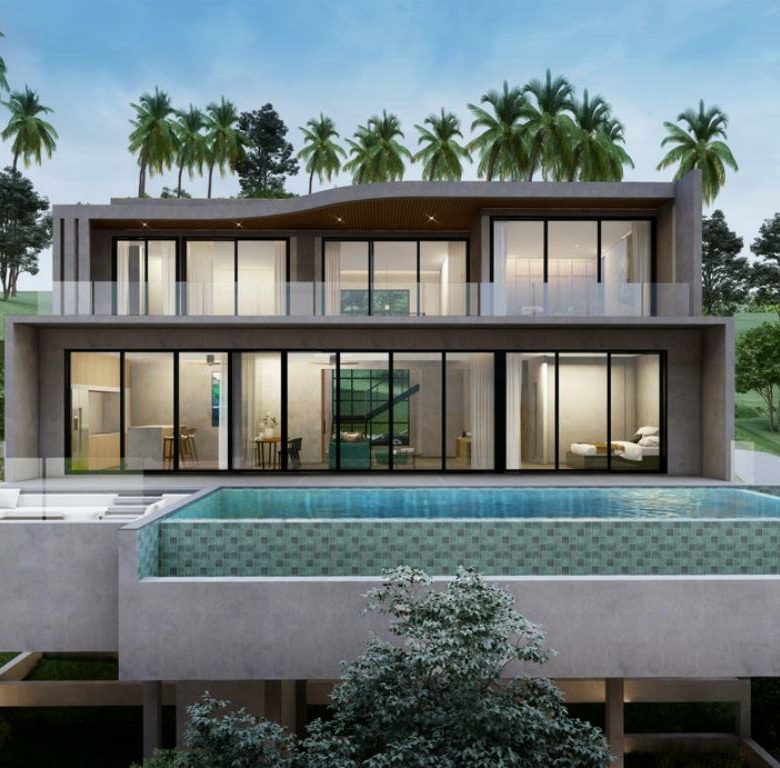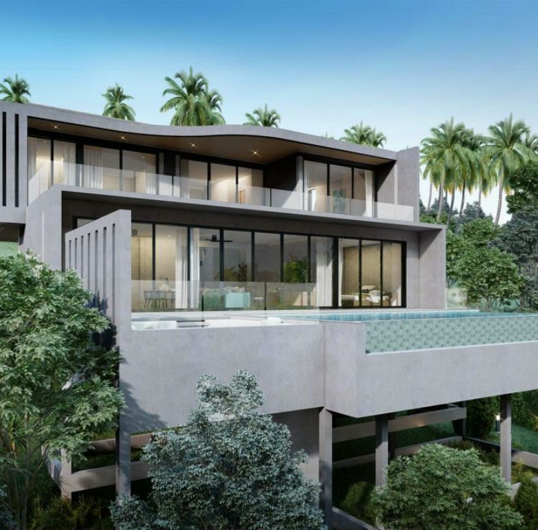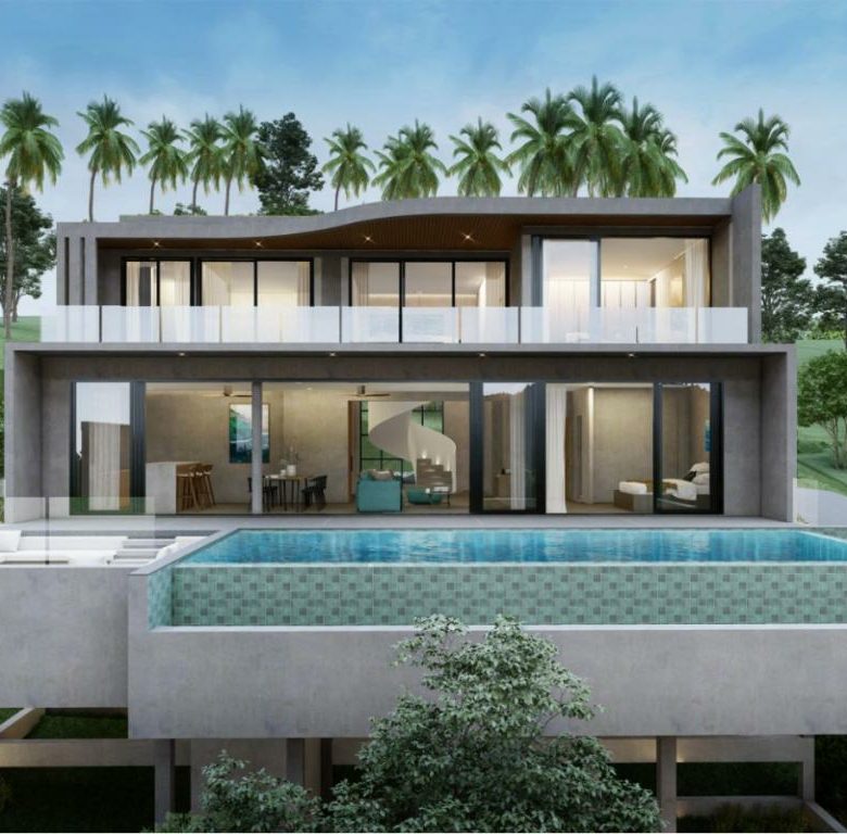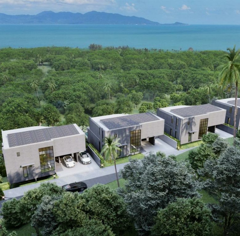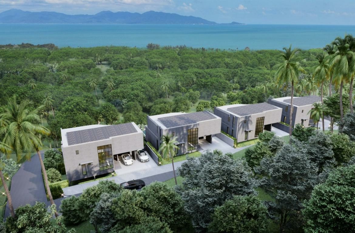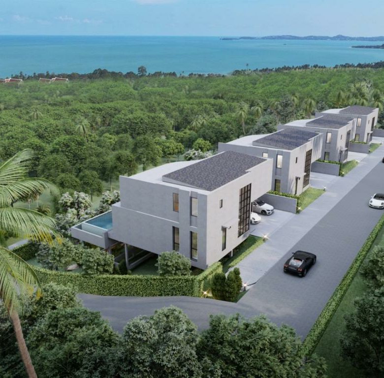currently under construction in Maenam. The villas have easy access, on A gentle slope with breathtaking sea views and views of Koh Phangan Island. A short drive to Lompraya Pier, Pralan Temple as well as the beautiful