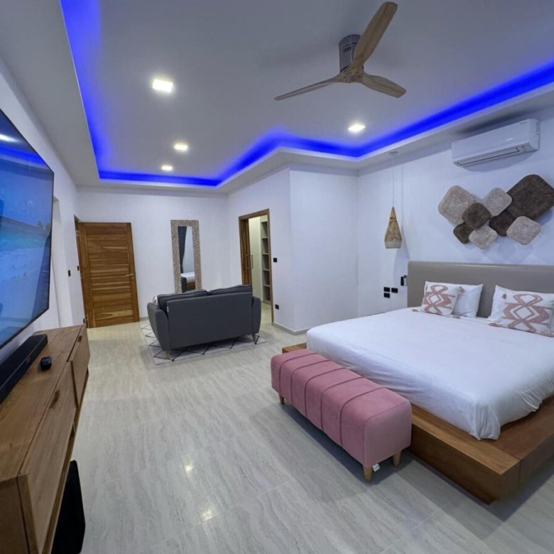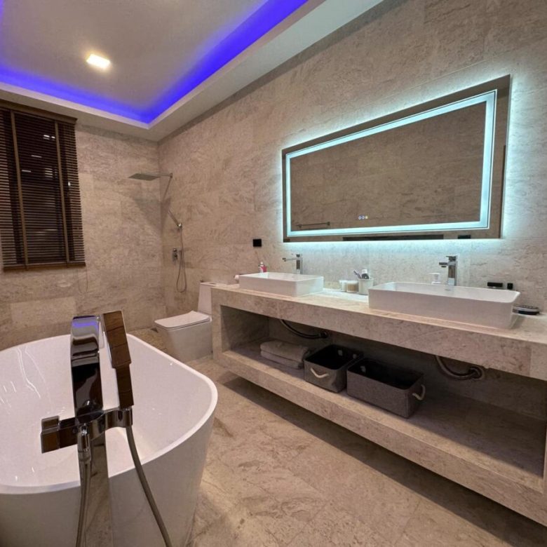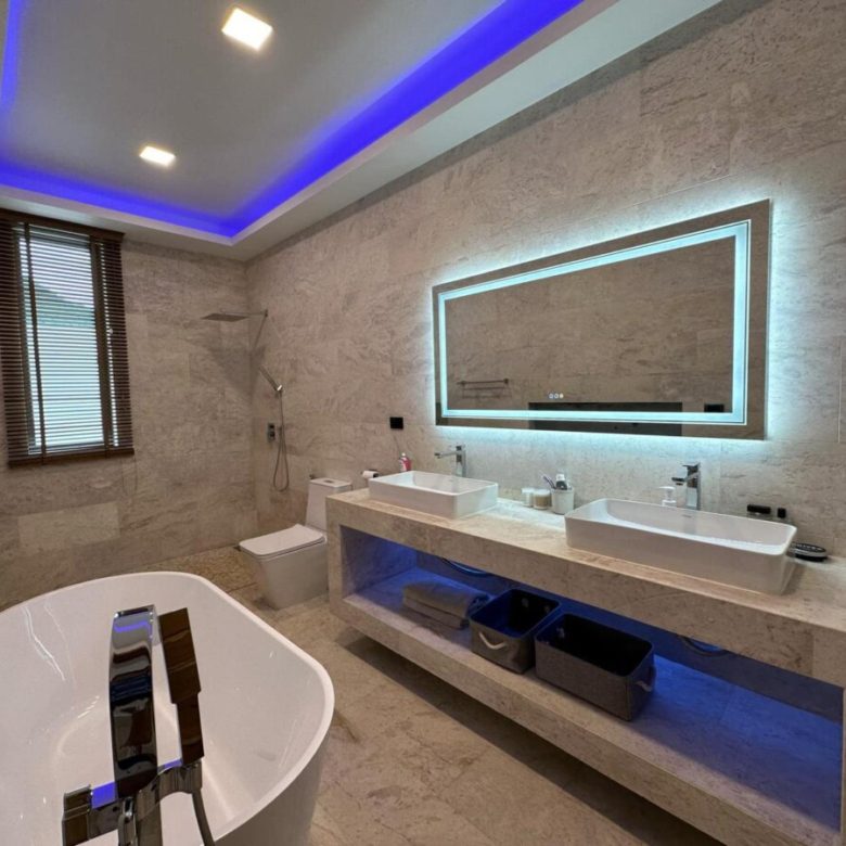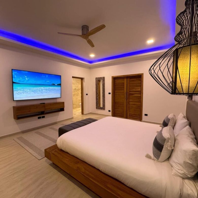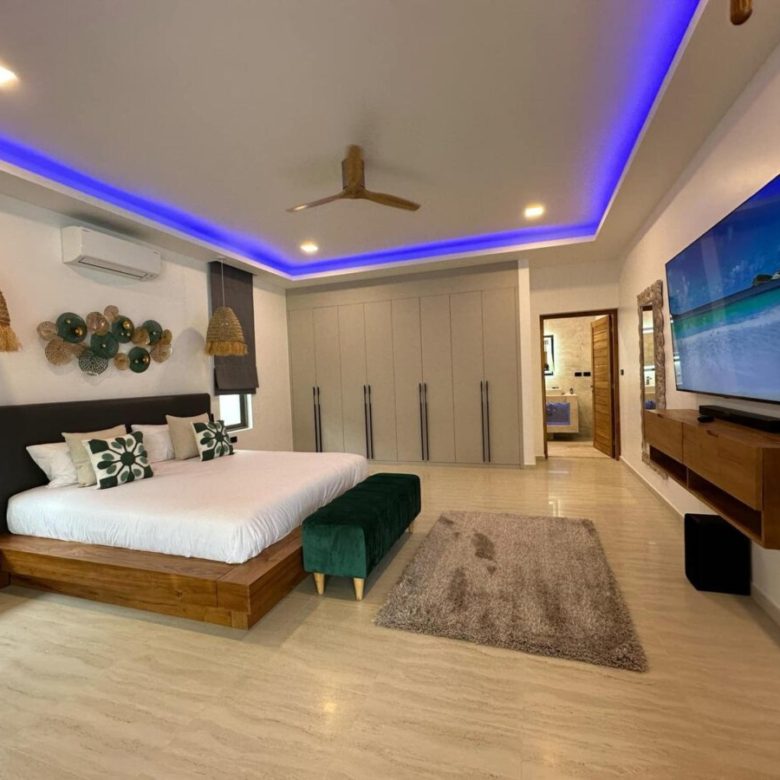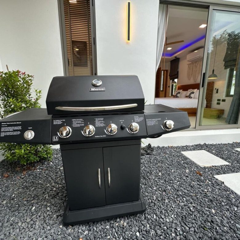 The covered parking space has space for 2 cars and motorbikes. The finish of the villa is perfect. If you are looking for a villa where you can feel at home, then this villa is your wish. The villa is fully furnished and has a European kitchen.