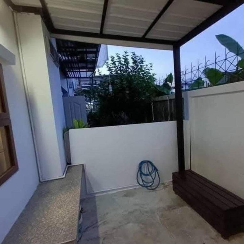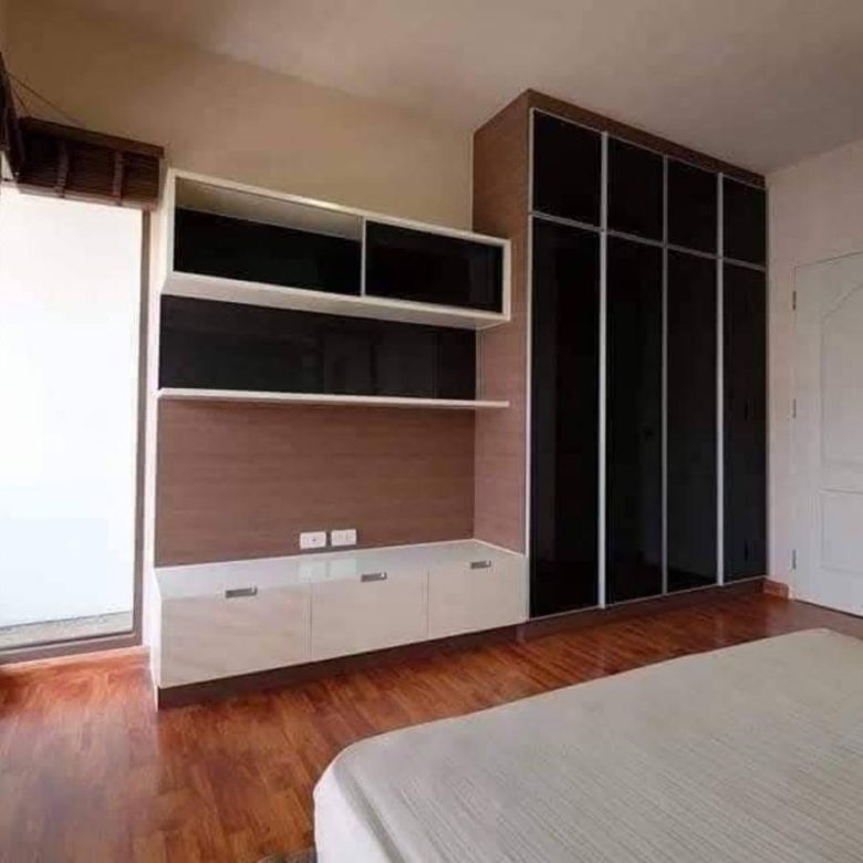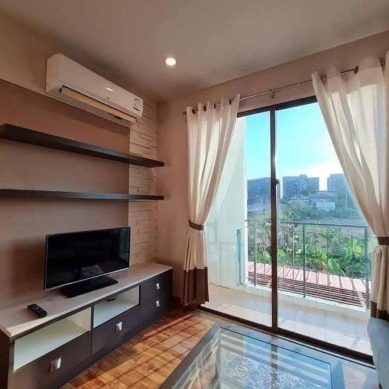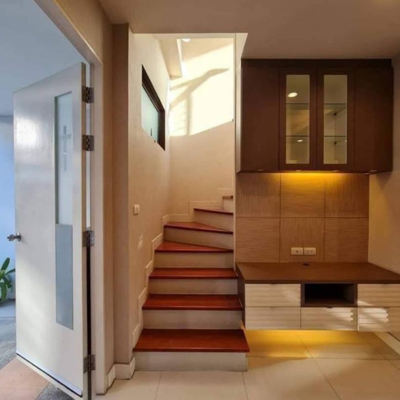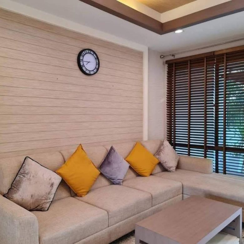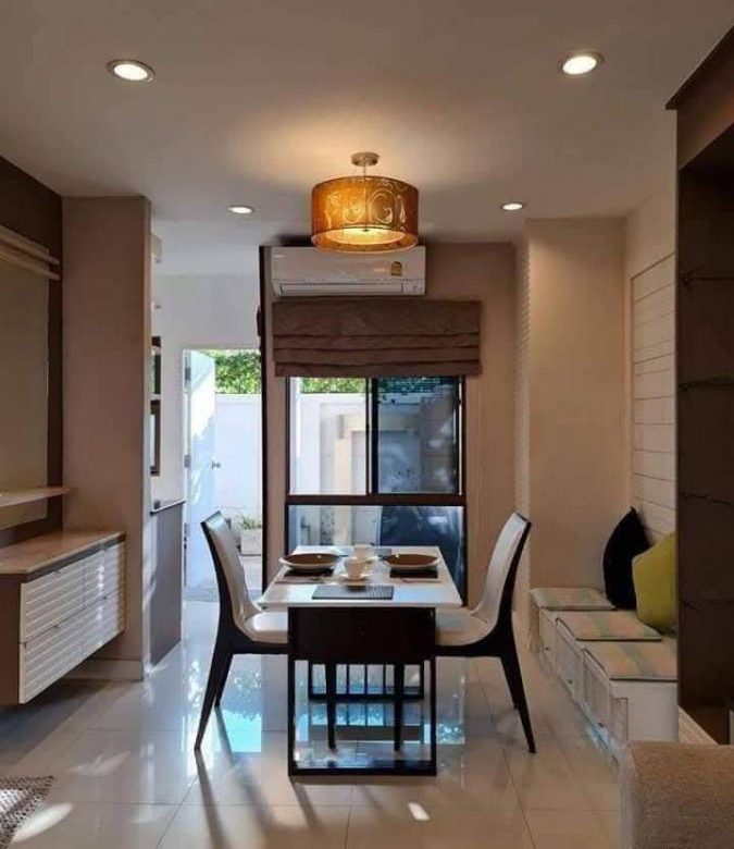 a 3-story townhouse on Sukhumvit Road, is in a prime location near the Sukhumvit 62 Expressway and Bang Chak BTS Skytrain, with multiple access points (On Nut 30 and 24). Fully furnished and ready to move in, the unit features 3 bedrooms, 4 bathrooms, 2 living rooms, a backyard, a kitchen with an electric hood, 5 air conditioners, a TV, a refrigerator, and a water heater