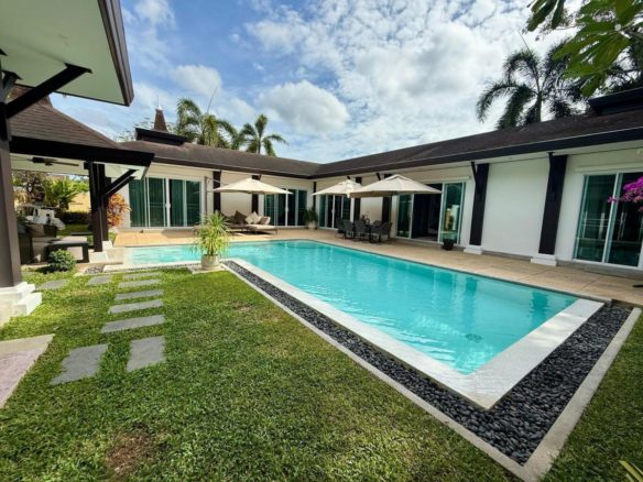 This newly renovated residence is located above the oceanfront villas and has stunning sea views. This villa has a total area of 630 square meters of space, 300 m of which are air conditioned. Arriving onto the main pool deck via stairs from the gardens below, the entrance opens into a large living and dining pavilion. The villaâs fully equipped modern kitchen, which includes a personal chef and butler, is available to guests. The bathroom includes a large built-in tub as well as a private steam shower. The two main bedrooms are accessible from either side of this pavilion, with a smaller third bedroom ideal for a small family or a small group of friends.