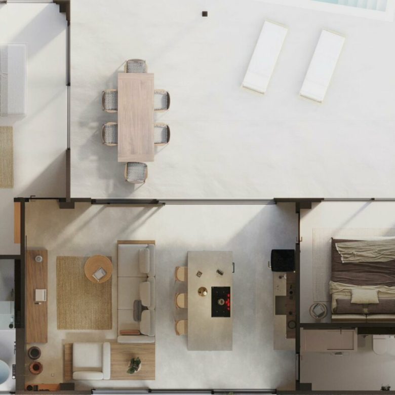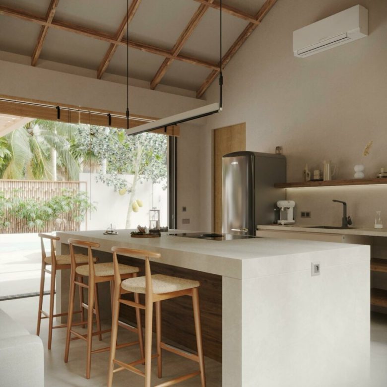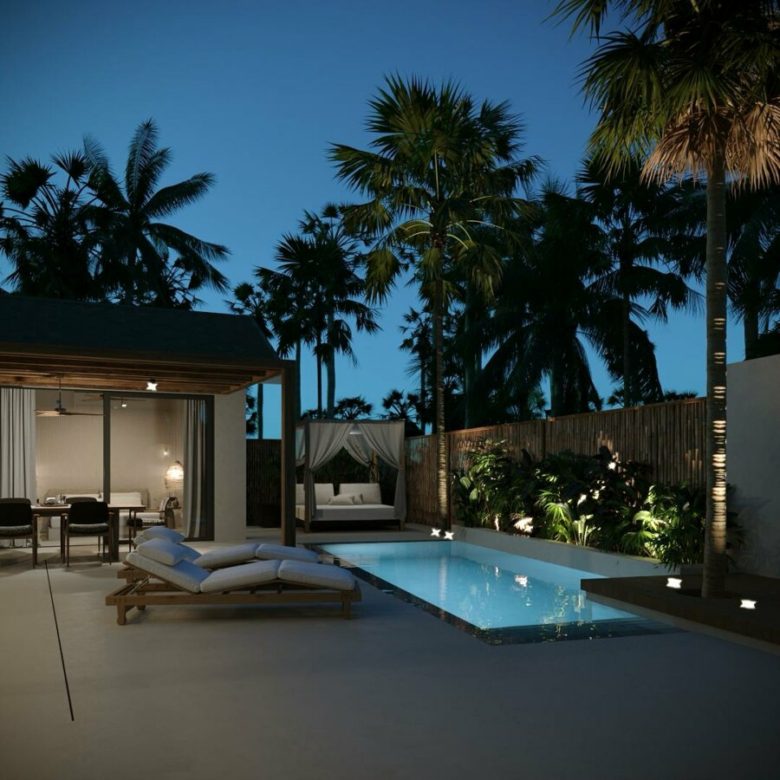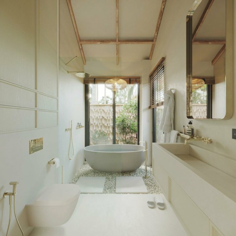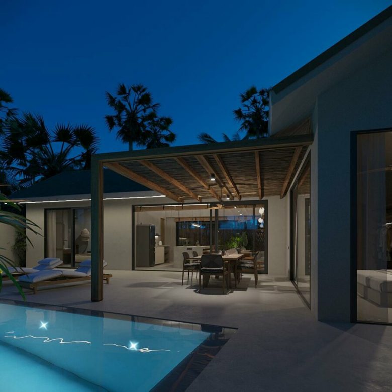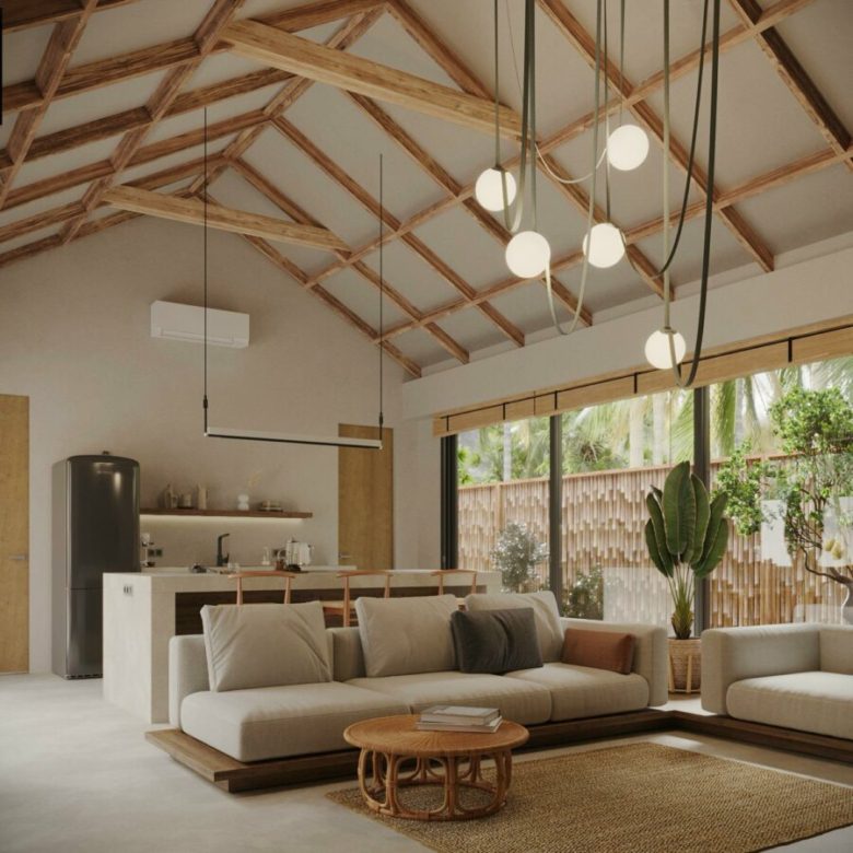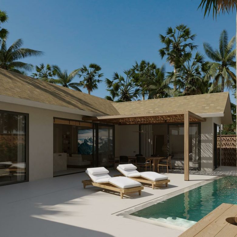 Sold fully furnished, the villas feature an open plan layout with a boho-style .