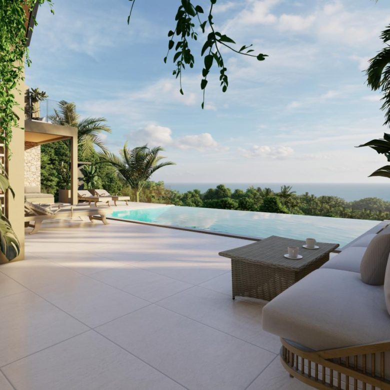 Discover elevated island living with this exclusive 4-bedroom sea view villa in the prestigious Bophut Hills of Koh Samui. Spanning over 700 sqm of modern tropical design, this brand-new residence features two infinity-edge pools, a 100+ sqm master suite, and breathtaking panoramic views from every room.
