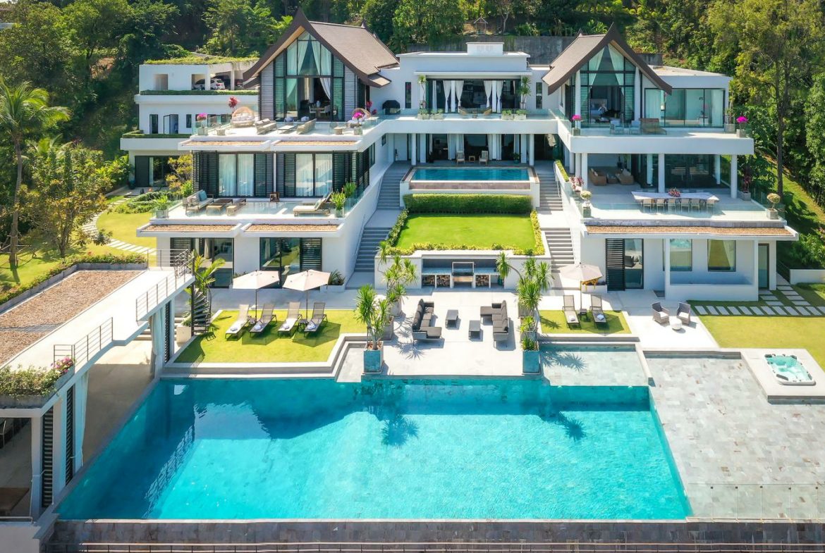 Right next to these indoor extravagances, sparkling gorgeously under the bright Thailand sun. The villa has two separate pools on two different levels, one of which is saltwater. The larger one at the main level comes with a shallow section for the kids as well as a Jacuzzi.
