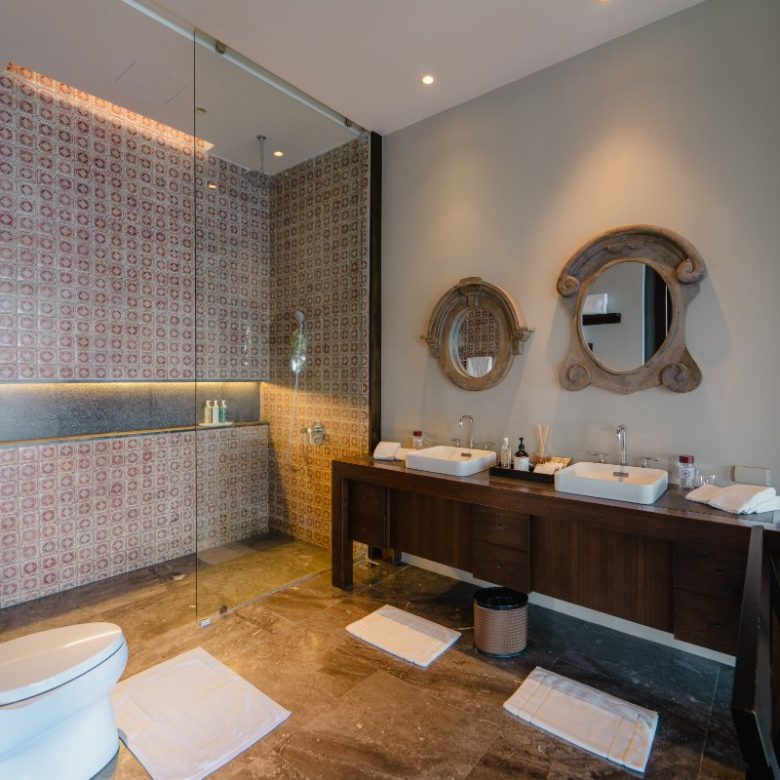 All five luxurious bedrooms in Villa Amarisa feature wooden floors with ceiling-high glass sliding doors leading onto a private balcony, some with stunning sea views and others with pleasing garden vistas. Each suite is unique in its dÃĐcor and furnishing, complete with an ensuite with spacious Moroccan-tiled showers and a double vanity.