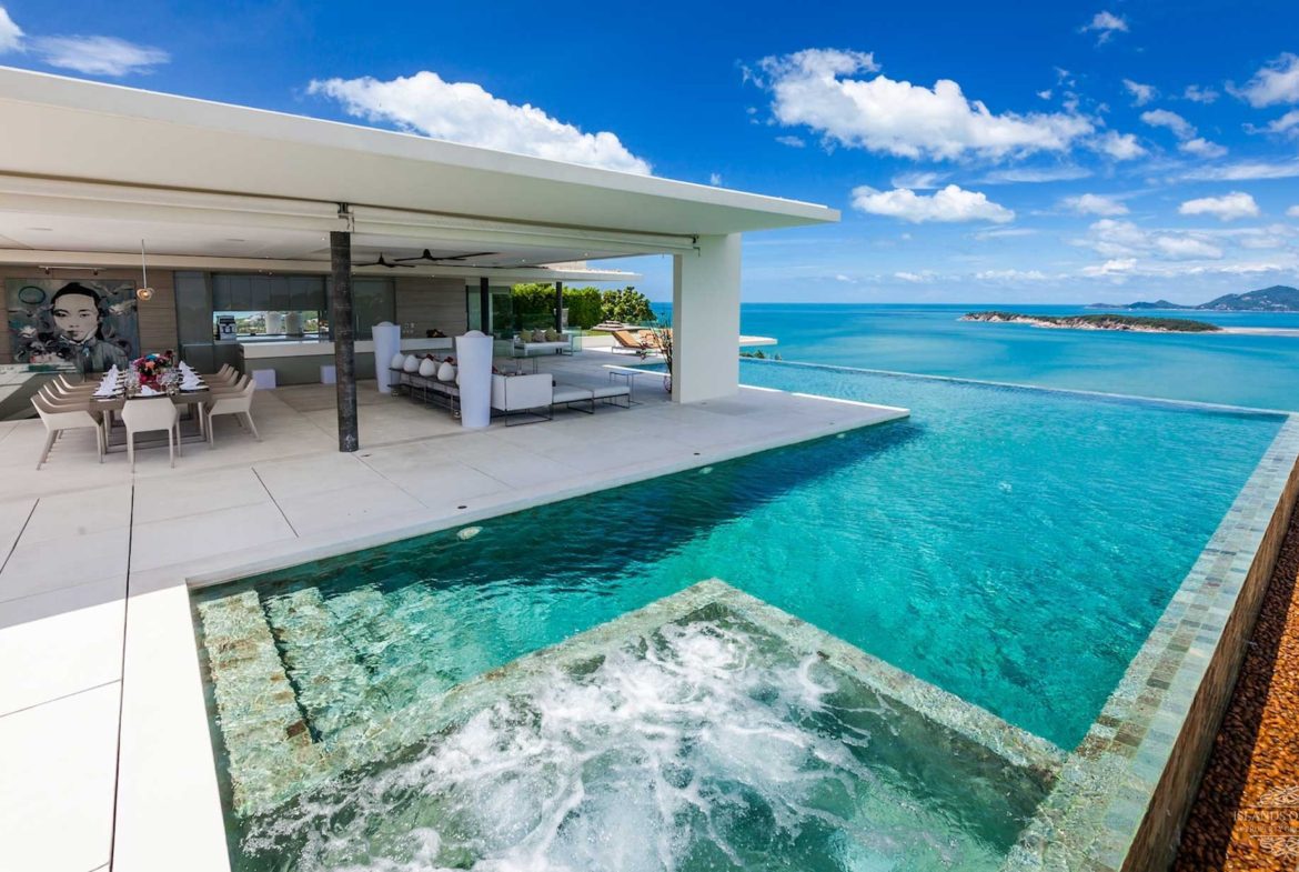 Located on the charming island of Koh Samui, just minutes away from the airport and main beaches of the island, Villa Anavaya is a world class private luxury villa accommodation committed to taking luxury and comfort to a whole new level. The villa’s elevated position boasting 360‑degree views of the stunning surrounding of the island is a complete definition of a tropical island holiday. Whether you are spending your long‑awaited vacation or just a weekend of relaxation, Villa Anavaya offers its guests tranquility and breathtaking spectacles of the ocean as well as the excellent detail and sophistication incorporated in its design.