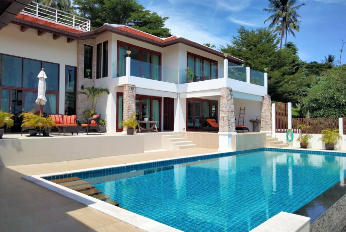 The indoor space is 800sqm of exquisite space on a land size of 800 sqm, excellent private swimming pool with lots of space for family chillout or barbeques or simply enjoy the cool breeze in the evening with a glass of wine under the moonlight with amazing views of the sea, landscaped garden, store room and parking for 2 cars in a secure, quiet community that’s only a short 5-minute drive to Bangpor beach and its promenade of restaurants and a little more to the 5 star Four seasons resort as well as the Mud restaurant, 10 minutes to Nathon, the administration Centre of Koh Samui and Nathon Pier with ferry services to the mainland, 10 minutes to the popular Fisherman’s village, Bandon international hospital and international school of Samui and 20 minutes to Samui international airport.