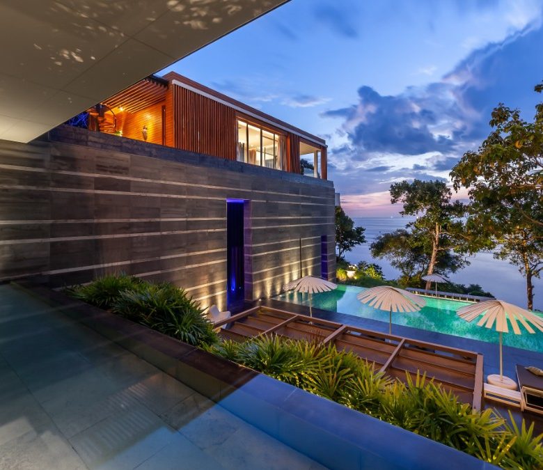 The apogee of modern Phuket oceanfront villa design. Big bold, linear lines and large glass expanses overlooking the Andaman sea, set the scene of a design that seems to befit a James Bond Movie set. Amongst many who have visited it is even known as, âThe James Bond Villaâ.