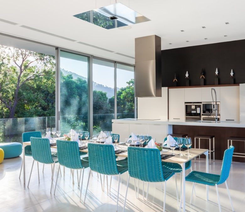 The house was custom designed by Martin Palleros of Terra Designs. All materials were carefully chosen to exude quality and textural richness. These extend from the natural exterior stonework, to the Japanese pool tiles, to the beautifully laid interior solid wood and French limestone and sandstone floors, the top quality, oversize glazing solutions to the furniture which runs as a whoâs who of European chic, with Poliform, Gandia Blasco, Boffi and Dornbracht, Paola Lenti and Minotti well represented.