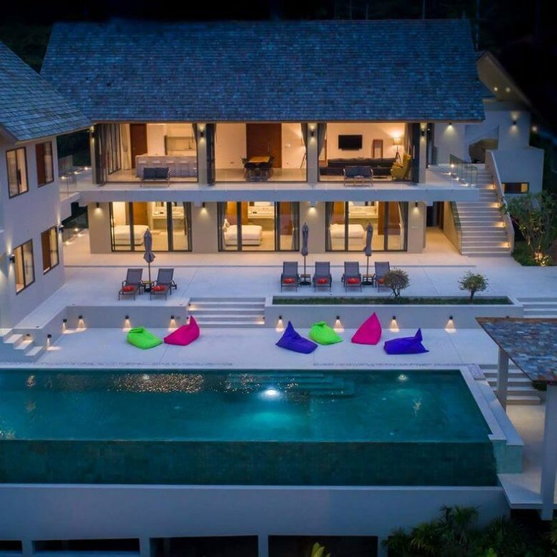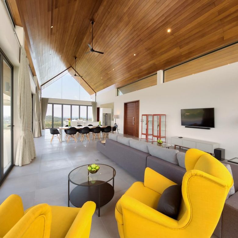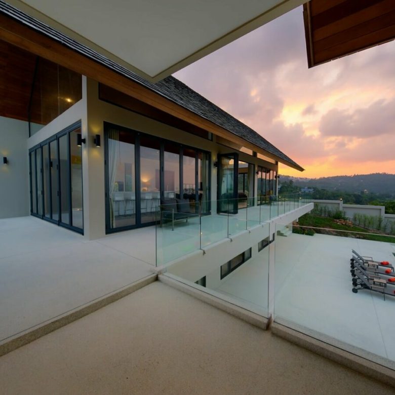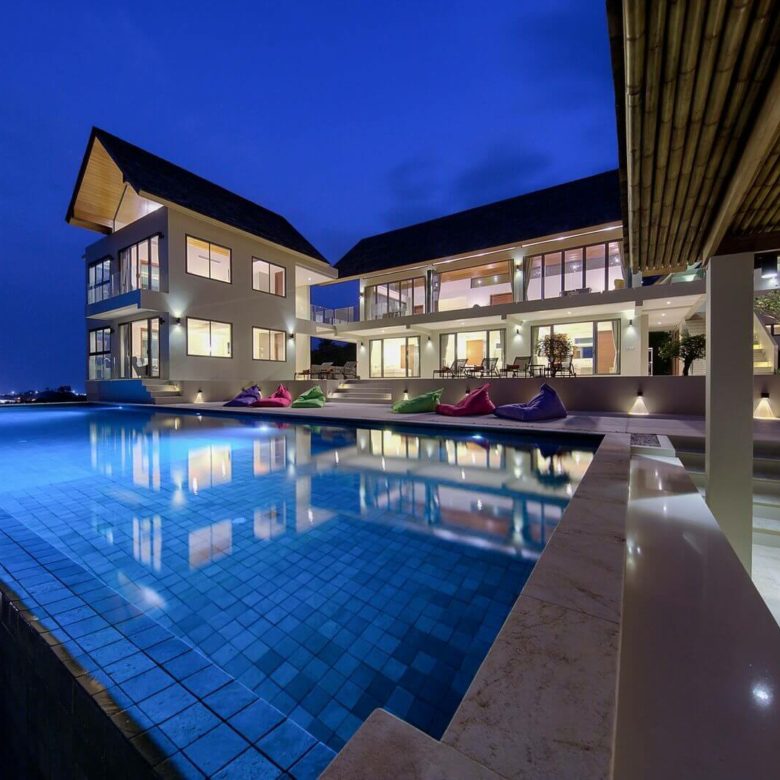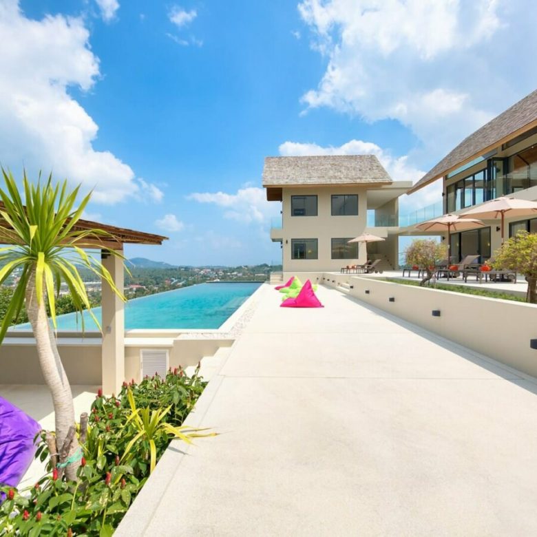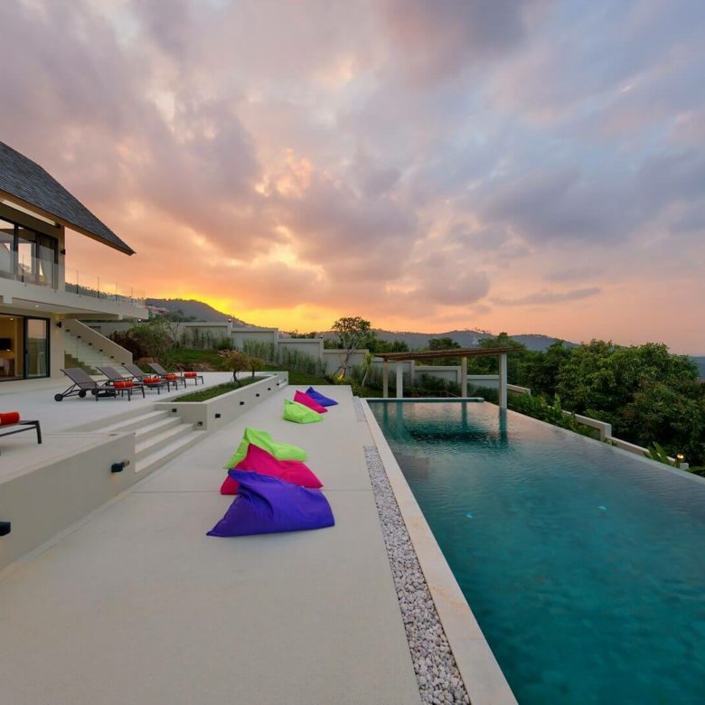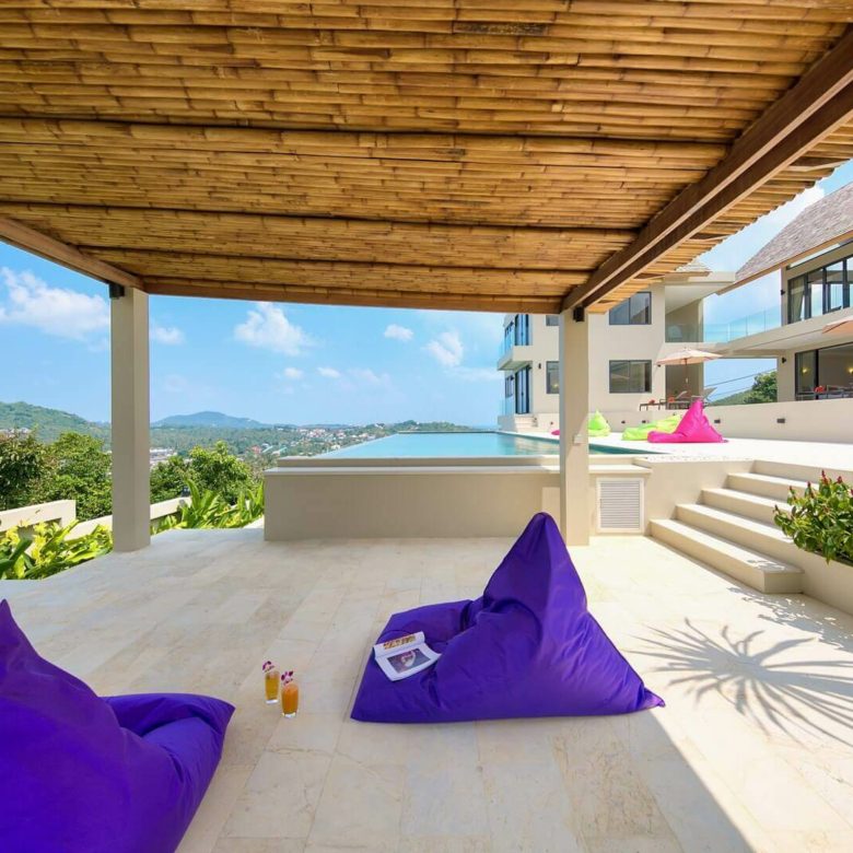 This brand new 6 bedroom villa is located high in the hills of Bo Phut, affording its guests a high quality and stylish standard of living along with stunning panoramic sea views.