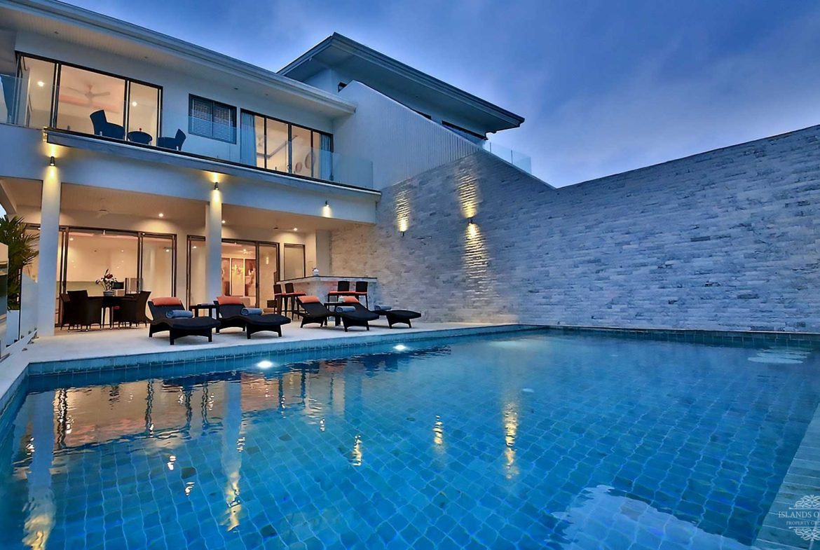 The villa’s large patio beside the 9 metre by 4 metre private pool overlooks the sandy shoreline of Tong Son Bay. And to your left you’ll start to take in the several kilometre long Big Buddha beach which stretches along the village of Bangrak and on to the well-renowned Fisherman’s Village and its myriad of restaurants, cafes, bars, market stalls and shops.  Around the patio you’ll also see a pool-bar, a gas BBQ, blue-tooth speakers for the sound system, sun-beds, pool-side furniture, a remote-controlled awning and an outdoor shower.