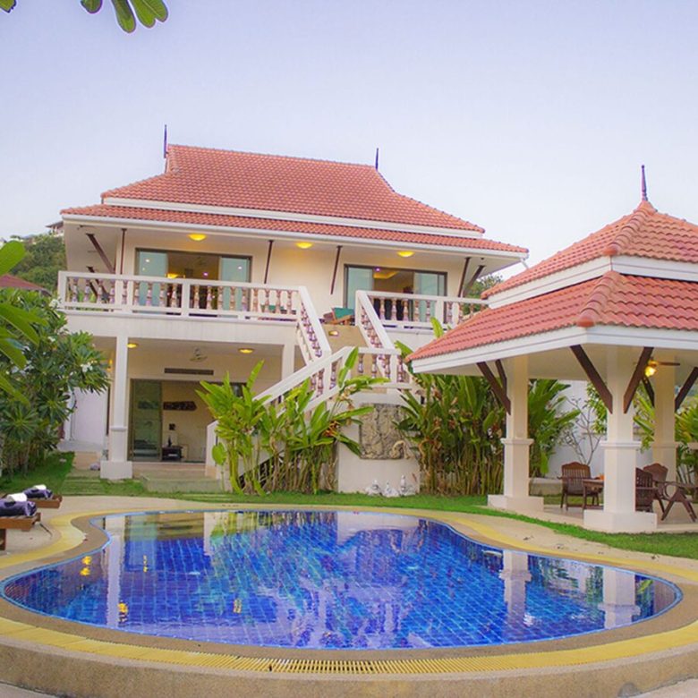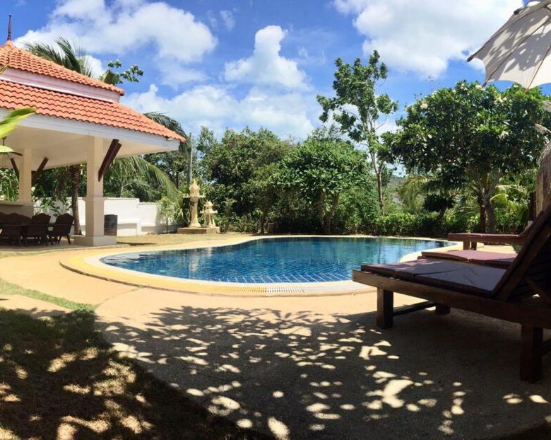 This beautiful Thai style villa in Plae laem is ideal as a family villa or investment. It is in a top location of Plai laem. The villa is closed all around and has entry through the gate from the parking lot, which has space for 1 car and several motorcycles.