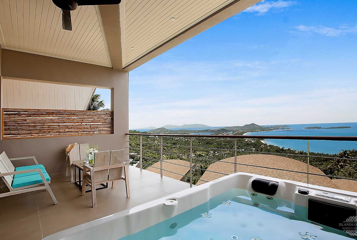 This villa offers an incredible 180° picture perfect view. You’ll likely spend quite a lot of time on the balcony and there’re comfy chairs and a Jacuzzi to help you relax into your holiday.