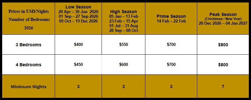 ⢠Free Private Villa WI-FI
