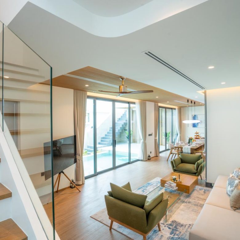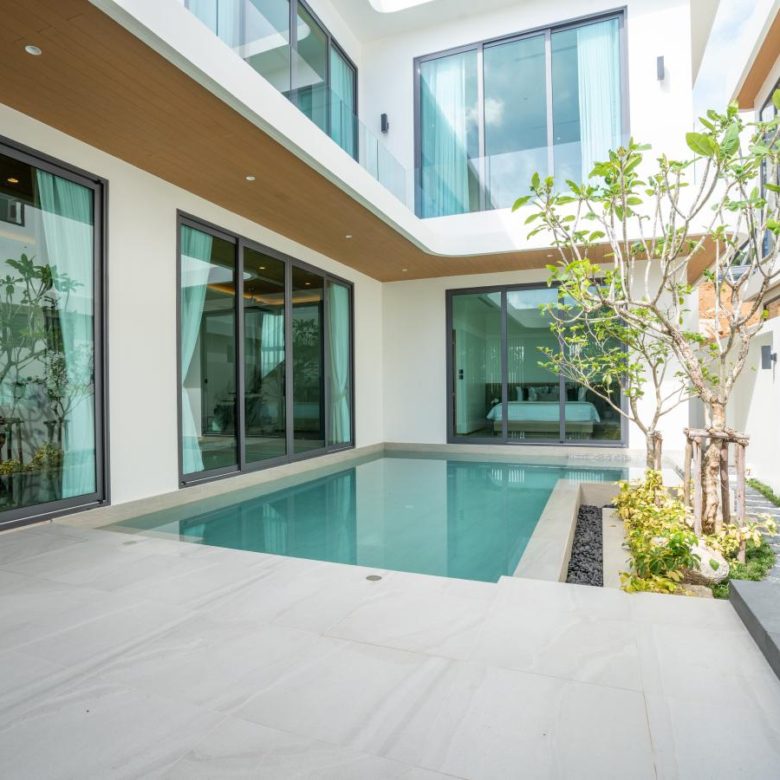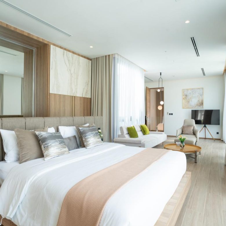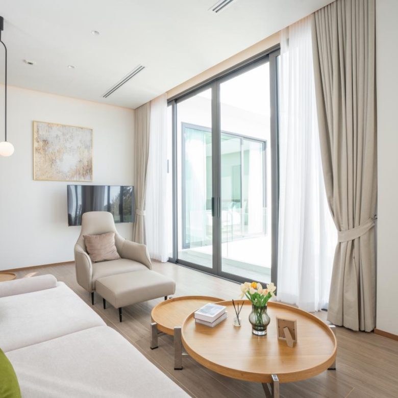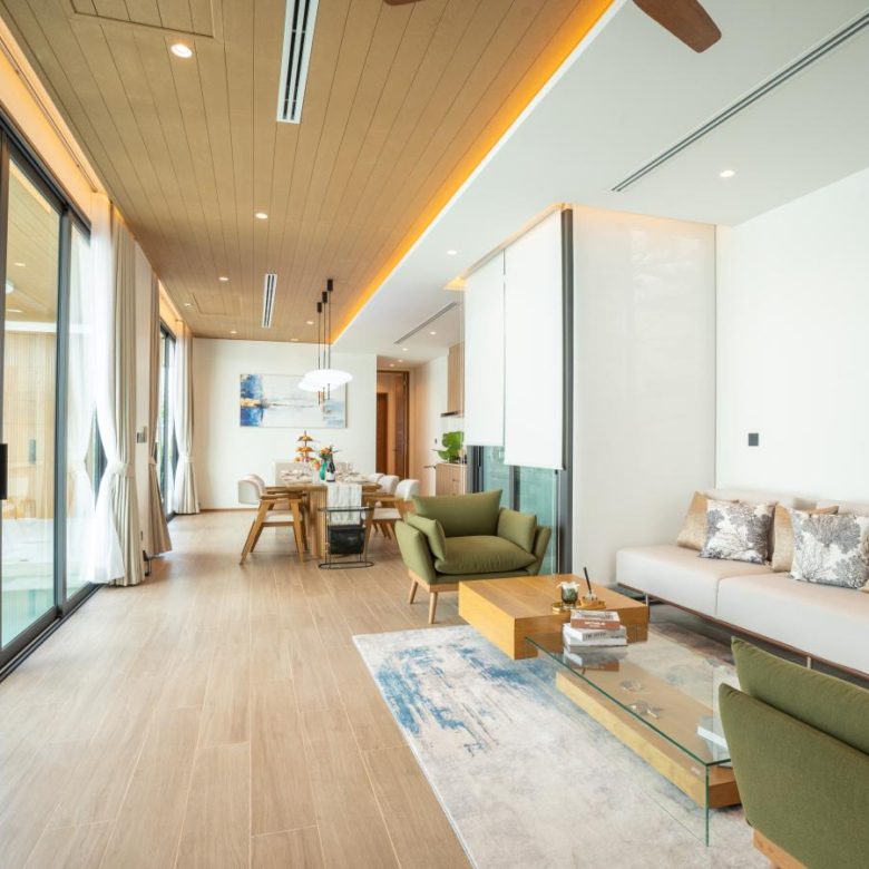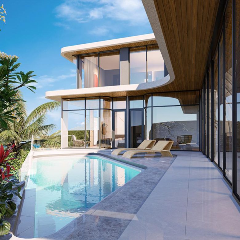The Story of Vimandara villa. The first meaning comes from the name Phuket, the second meaning with the same sound in Thai as a beautiful house is Viman, and Dara means spectacular scenery. Therefore, the meaning combines into Phuket’s beautiful house mountain. Vimandara is located at Nai Thon Beach. It is in a truly stunning hillside environment. See the beautiful sea view just 300 meters from Nai thon Beach. Nai Thon is a high-end private beach and is close to various local amenities such as Phuket International Airport, Sirinat National park, United World College Thailand”(UWCT), Blue Canyon Country club, Tesco Lotus Supermaket, Markro Classic Store, and the Thalang hospital. This project is built with a luxurious lifestyle and relaxation in mind. The Vimandara project is designed in a modern style overlooking the sea.
