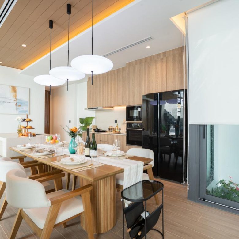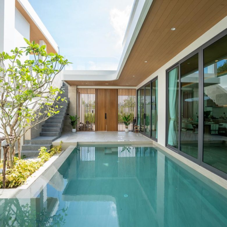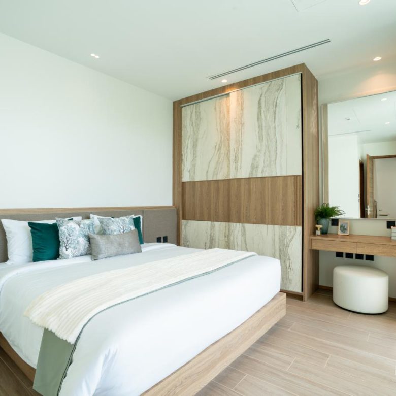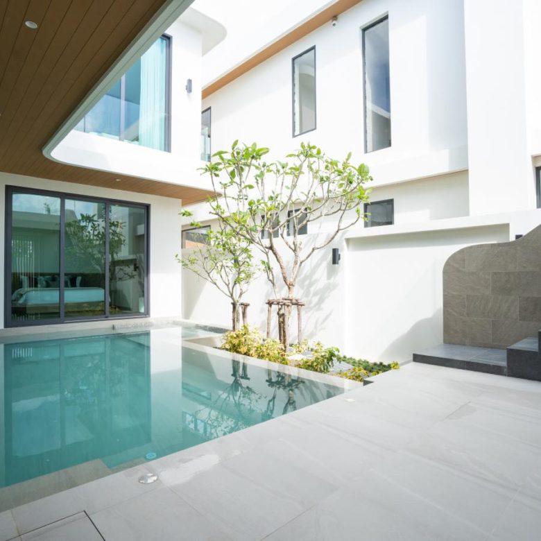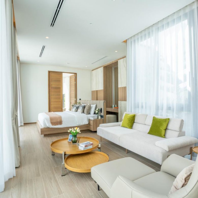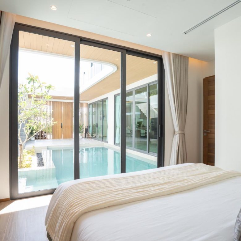 The Story of Vimandara villa. The first meaning comes from the name Phuket, the second meaning with the same sound in Thai as a beautiful house is Viman, and Dara means spectacular scenery. Therefore, the meaning combines into Phuket’s beautiful house mountain. Vimandara is located at Nai Thon Beach. It is in a truly stunning hillside environment. See the beautiful sea view just 300 meters from Nai thon Beach. Nai Thon is a high-end private beach and is close to various local amenities such as Phuket International Airport, Sirinat National park, United World College Thailand”(UWCT), Blue Canyon Country club, Tesco Lotus Supermaket, Markro Classic Store, and the Thalang hospital. This project is built with a luxurious lifestyle and relaxation in mind. The Vimandara project is designed in a modern style overlooking the sea.