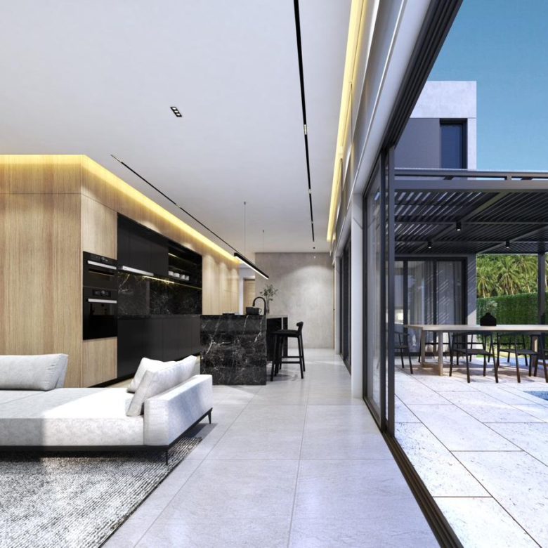 Each of the villas has three bedrooms with their own bathrooms, a modern and contemporary kitchen with island, a panoramic living room with breathtaking dining area, a guest toilet, an office area and a green garden including a spacious terrace as well as a 7x3m salt-treated swimming pool.