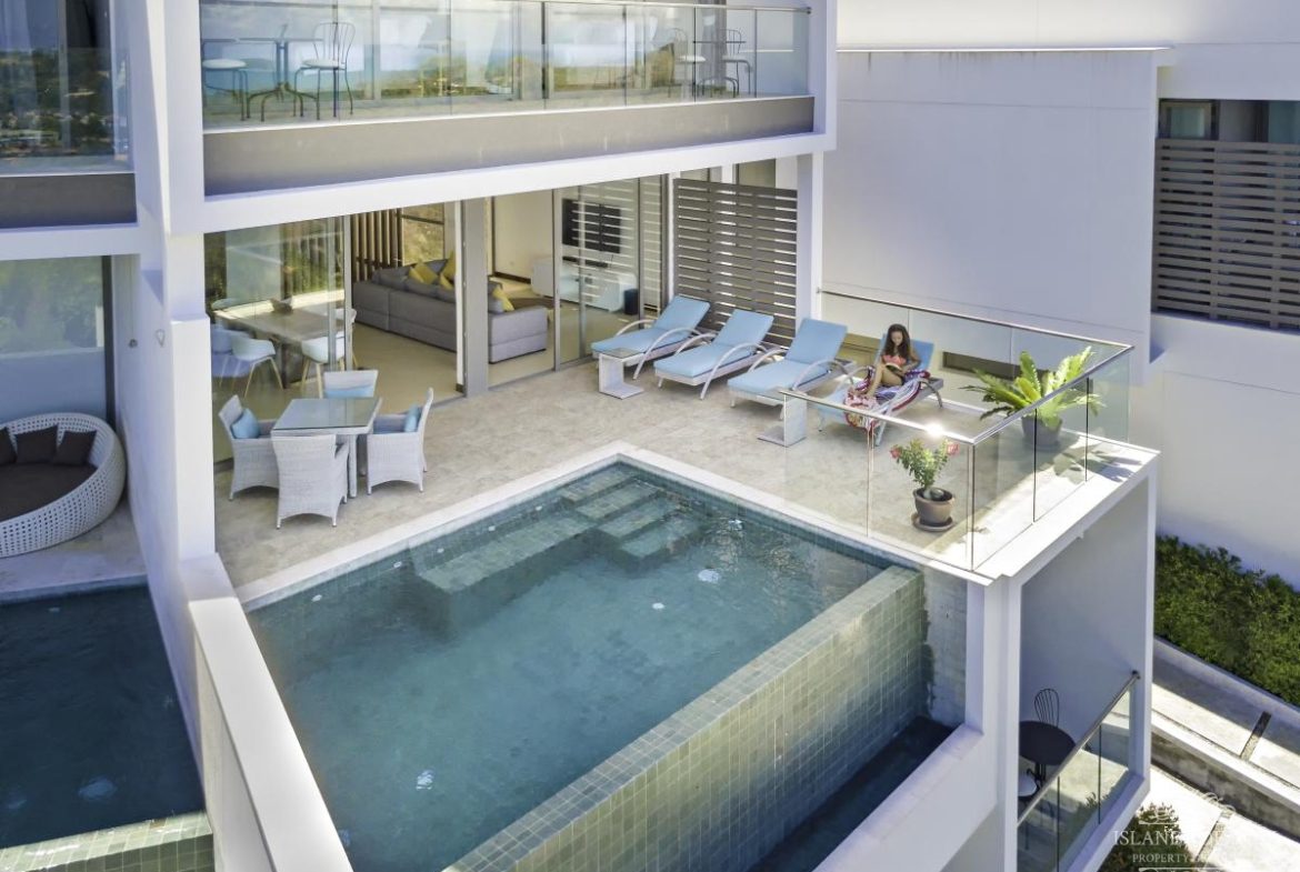 A wonderful luxury 4 bedrooms with private infinity pool overlooking to Choeng Mon Beach and Fan Island. Villa is designed for relaxed outdoor living, modern style, the living area has comfortable sofas and plenty of space for everyone. This villa is perfect for a large family or groups of friends, who want to enjoy the pool and the main living area together.