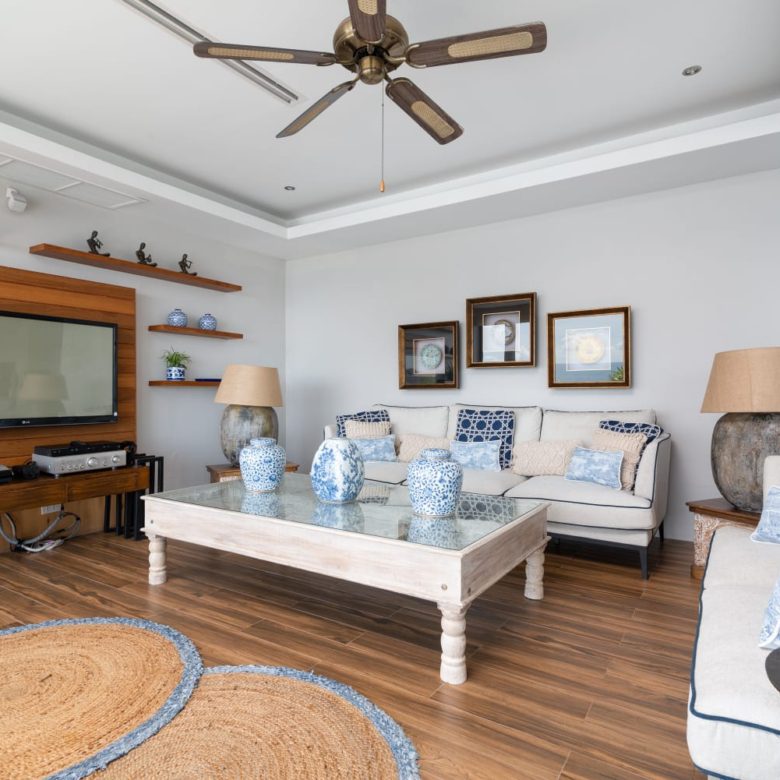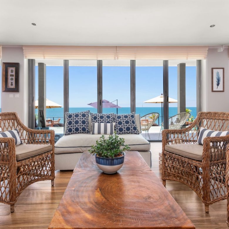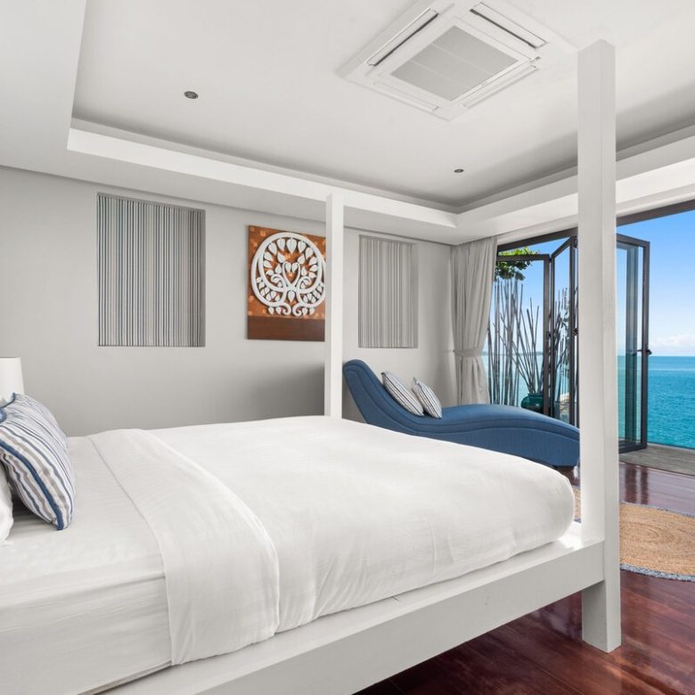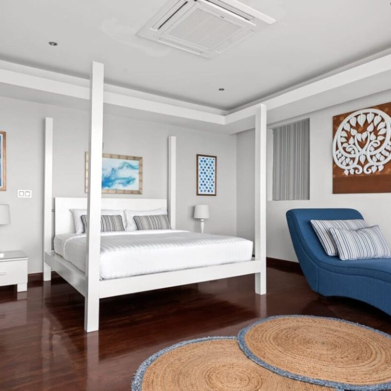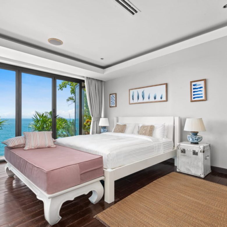 All three upstairs bedrooms offer impressive sea views and are connected by the full-length terrace. Elegantly appointed with a unique selection of modern Thai decoration.