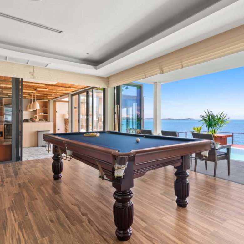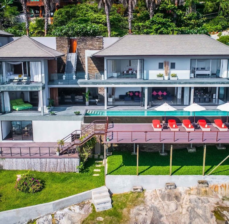 Located in Chaweng Noi, the villa is right on the water, just five minutes from the world-famous Chaweng Beach and its vibrant nightlife. Golf enthusiasts are just a 20-minute drive from the PGA Santiburi Golf Course. Fishermans Villa with its family-orientated atmosphere of bars and restaurants is 15 minutes away.