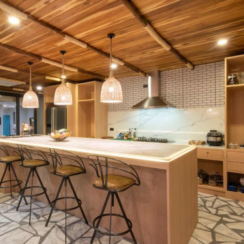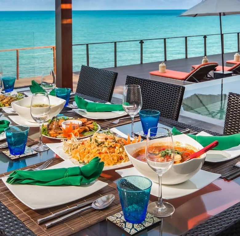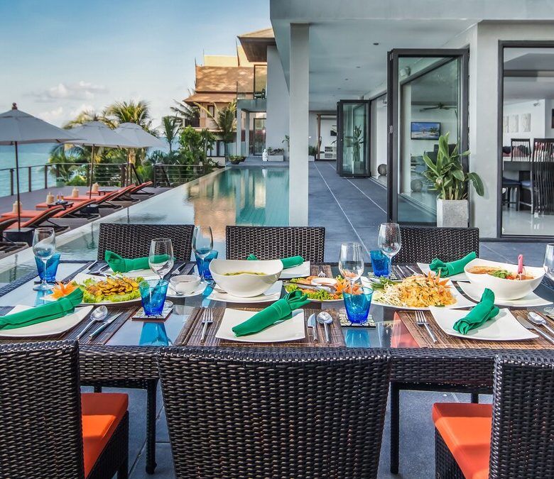 Guests can also watch their meals being prepared and cooked next to them as the chef’s work station is clearly visible. The kitchen is equipped with a granite countertop, double sink, oven, microwave, six-burner stainless steel gas stove and a separate cooking island. The extra space in the kitchen allows guests interested in Thai cuisine to watch the chef and even try their hand at cooking an authentic meal.