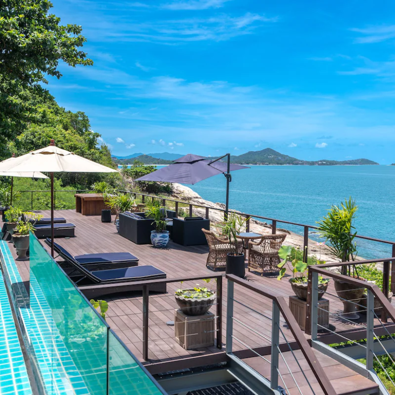 Located next to Koh Samui’s prestigious viewpoint at the southern tip of Chaweng Beach, the property offers a captivating sea panorama even before you arrive. As you walk down the stairs, you will immediately notice the most serene and peaceful view, with 180-degree views of the rocky coastline, coconut-lined beach and the landscaped spectacle of the endless ocean.